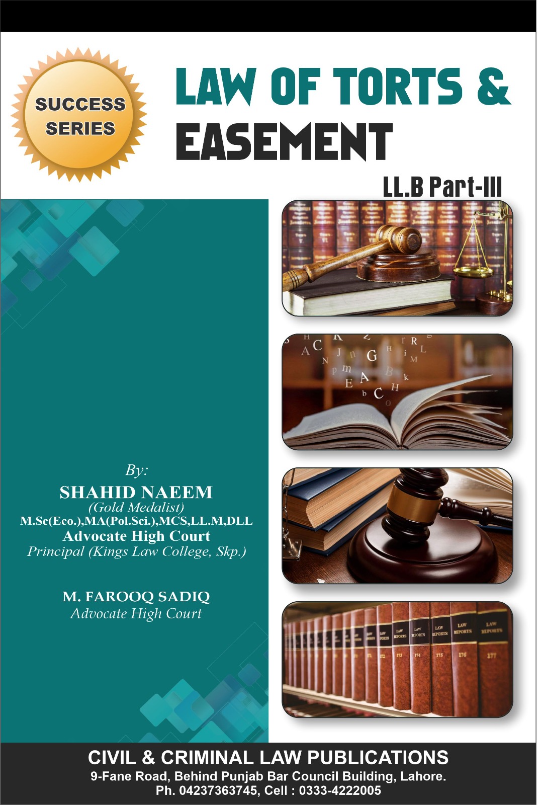Law of Torts and Easement LL.B Part-III Book written by Shahid Naeem and Published by KLR Publications.
